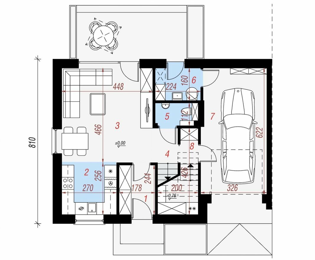 - Między budynkami podwójna ściana (2x24cm) oraz dylatacja 5cm,